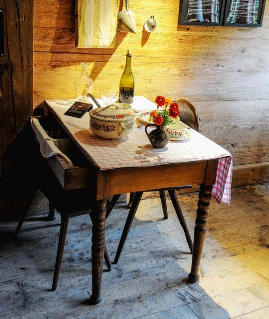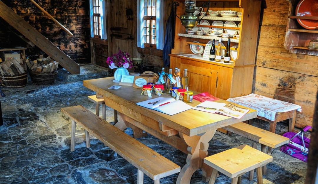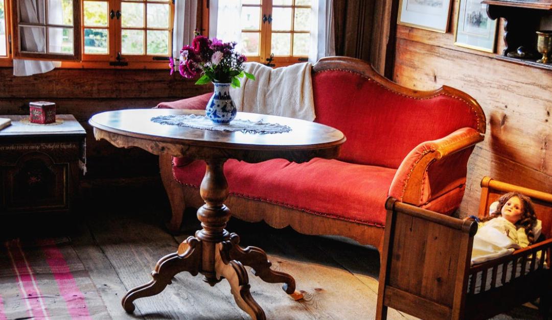 Schon bald hatte das Paar mehrere Kinder, was man daran erkennen kann, dass ihre Namen in ein und dasselbe Taufkleidchen, auf einer originalgetreuen Wiege ausgelegt, eingestickt sind. Überhaupt ist es so, als ob man mit den Grosseltern der Grosseltern der Urgrosseltern spricht: lange her, aber nicht völlig fremd. Ein weiteres Beispiel: Das Untergeschoss aus Stein ermöglichte eine breite steinerne Treppe ins erste Wohngeschoss, die immer gut sauber gehalten werden konnte. Direkt unter dem Wohngeschoss war die gut eingerichtete Werkstatt («Boutique») mit Werkzeugen, wie sie vielleicht noch unsere Grosseltern verwendet haben. Vor dem Haus lag, wie in sehr vielen Bauernhäusern des Kantons Bern, aber auch des Aargaus und des Bodenseeraums, der reichhaltig bestückte Blumen- und Gemüsegarten, voll auch mit Gewürzen. Die Grundfunktionen eines solchen Hauses ohne direkt angebauten Stall waren in vielen Regionen gleich: einfach, aber gut zu bewirtschaften, weil sehr eng an die Grundfunktionen des Lebens angelehnt. In der Einrichtung des ersten Wohngeschosses mischen sich spätbarocke und Biedermeier-Elemente zu einem Bild, das erneut den Eindruck erweckt: Die Bewohner sind schon lange weg, aber «irgendwie» kennt man solche Bilder noch.