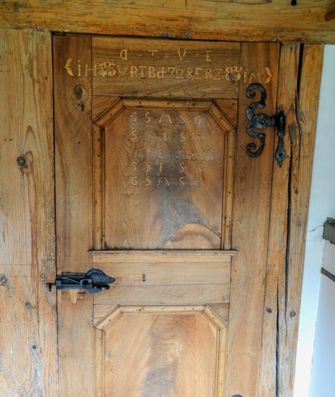 Gehen wir ein paar Generationen zurück. Unter der Annahme, dass man für eine Generation rund dreissig Jahre rechnen kann, passt das wunderbar auf die Gründungszeit des barocken Bauernhauses, in dem sich heute das Heimat- und Rebbaumuseum Spiez befindet. Alles beginnt früh im Leben des barocken Winzers und Bauern Hans Rebmann: Bereits 1720 lässt er sich von Zimmermann Christen Linder einen Speicher für landwirtschaftliche Produkte am Spiezberg bauen. Soweit man weiss, war er da noch ledig. Acht Jahre später, im Jahr 1728, lässt er sich das Wohnhaus errichten, in dem sich heute das Spiezer Heimatmuseum befindet. Man weiss das, weil sich das Hochzeitsjahr als Gravur in der vermutlich aus Kirschbaumholz gefertigten Tür ablesen lässt. Es war damals in Spiez Sitte, dass die Gemeinde einem neu erbauten Haus eine schön verzierte Wohnzimmertür schenkte – so auch hier.