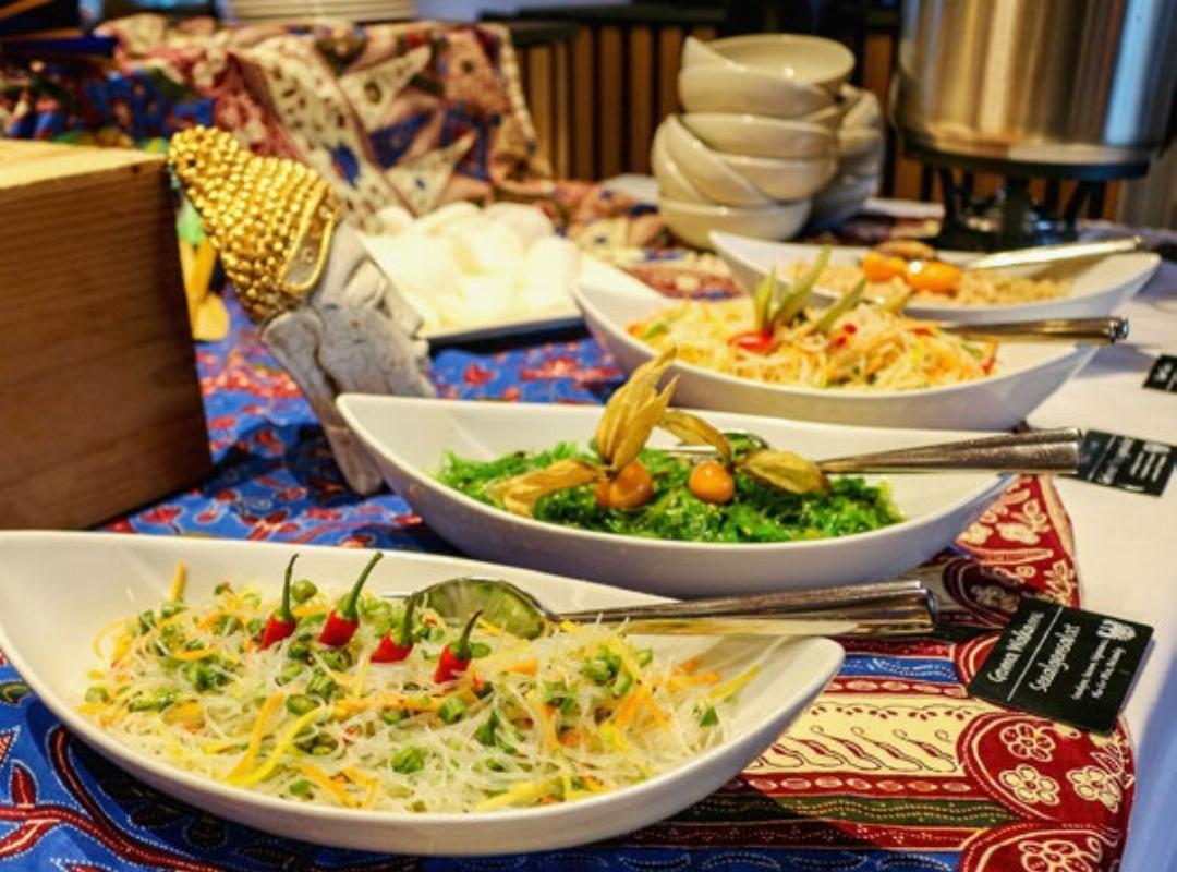 Das Vorspeisenbuffet mit seinen zwölf Gerichten ist ein Appell an alle Sinne. Und so schlemmen die Gäste nach Herzenslust bei all den liebevoll präsentierten Köstlichkeiten. Fast bin ich versucht, den ersten Gang mit einer weiteren Portion der Kokos-Zitronengrassuppe zu verlängern. Aber, wie Sie richtig vermuten: Die Vorspeisen wecken Appetit auf mehr.