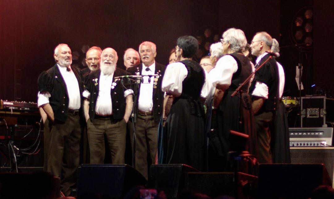 Langsam füllt sich der Rasen vor der Bühne, dicht an dicht stehen die Besucher. Organisator Reto Grossen tritt auf die Bühne und kündigt an, dass vor dem Hauptact noch ein «Special Guest» auftreten wird. «Denn wir wollen unsere wunderbaren Berge beschwören.» Auf die Bühne bittet er die Bärgjodler Aeschiried, welche sich unter grossem Applaus aufstellen. Mit zwei heimeligen Stücken holen sie die Zuschauer ab.