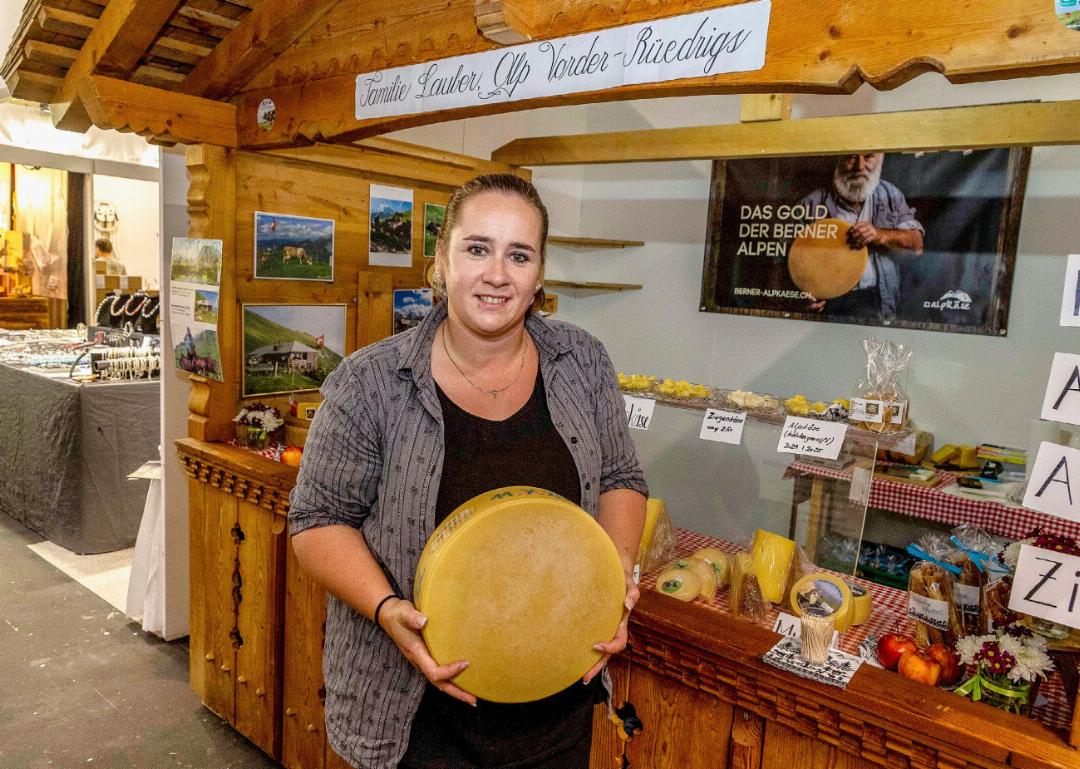 Für Daniela und Thomas Aeschlimann steht dabei nicht nur der Verkauf im Vordergrund: «Die Ausstellung bringt immer schöne Begegnungen mit sich – es entstehen bleibende Kontakte und das freut uns sehr.» Ebenso beliebt war der Stand von Fränzi Lauber, die von der Alp Rüederigs im Kiental feinsten Berner Alp- und Hobelkäse AOP, Mutschli und aromatischen Ziegenkäse mitgebracht hatte – ein echtes Stück Alpkultur zum Geniessen.