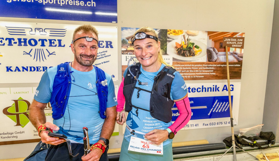Die Umgebung war still, kein Wind, kein Laut, nur das rhythmische Schaben seiner Schuhe auf dem Stein. Gafner spürte die Höhe, die Einsamkeit, die Konzentration und der Oberwiler wusste, jeder Schritt zählt. Oben auf dem Gemmipass, auf 2268 Metern über Meer, öffnete sich die Landschaft. Zwischendurch sah Gafner die Lichter der anderen Läufer. Und nach und nach überholte der Parlamentarier einige der Mitstreiter beim Wild 110. Im Abstieg nach Kandersteg war der Pfad steinig und stellenweise schmal. Nachdem Gafner an alpinen Matten und kleinen Bächen vorbeigelaufen war, erblickte er Kandersteg. Bei der Kunsteishalle stand Andrea Zryd schon parat, um die Startnummer in Empfang zu nehmen. Um 3.50 Uhr stand Gafner vor Zryd und band der Adelbodnerin die Startnummer um. Zryd lief mit ihrem Laufpartner Alex Reinhard los. Nun konnte Gafner sich von Patrick Jost und den vielen Helfern in Kandersteg verwöhnen lassen. Das Helferteam in Kandersteg war seit 1.30 Uhr im Einsatz und der erste Läufer kam bereits um 2 Uhr an. Insgesamt waren vor Gafner schon 189 Läufer durch die Station in Kandersteg gelaufen.