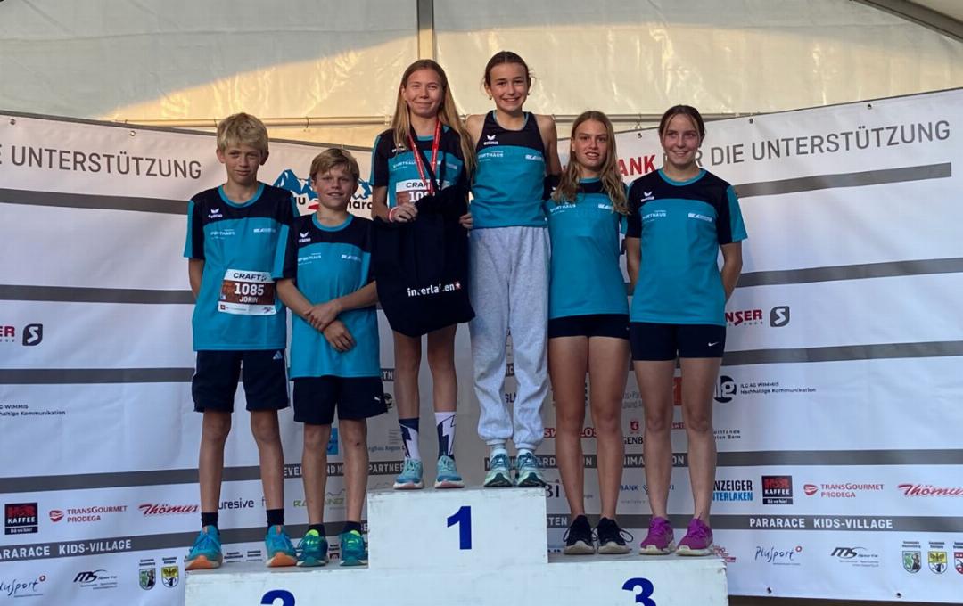 Am Minirun in Interlaken war der LC Scharnachtal nicht zu stoppen: Jil Zenhäusern, Anja Schertenleib, Mishel Rao, Anouk Auf der Maur und Liam Auf der Maur sorgten für fünf Podestplätze und einen klaren Teamsieg.