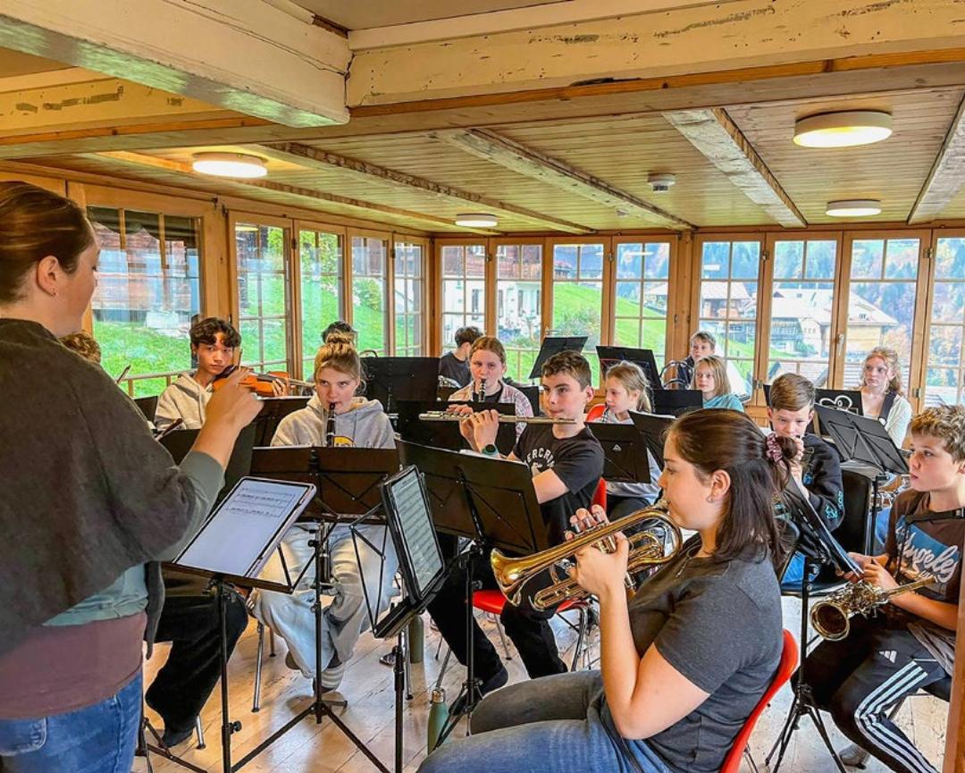 Der Start am Freitagabend stand ganz im Zeichen des Genusses: Hamburger bildeten den Auftakt und sorgten bei den siebzehn Kindern und den drei Leitenden für glänzende Augen. Anschliessend stand Pantomime auf dem Programm. In Dreiergruppen traten die Juniors gegeneinander an und sammelten Punkte – ein spielerischer Auftakt, der die Stimmung sofort hob. Am Samstag wartete ein reichhaltiges Frühstück, bevor die Registerproben begannen. Mit grosser Konzentration und viel Motivation arbeiteten die jungen Musikerinnen und Musiker an ihren Stücken. Ein Znüni stärkte zwischendurch, und nach dem Mittagessen wurde Rücksicht auf die Älteren genommen: Während sie Lernzeit für die Schule nutzen durften, spielten die Jüngeren Pingpong oder widmeten sich Bewegungsspielen.