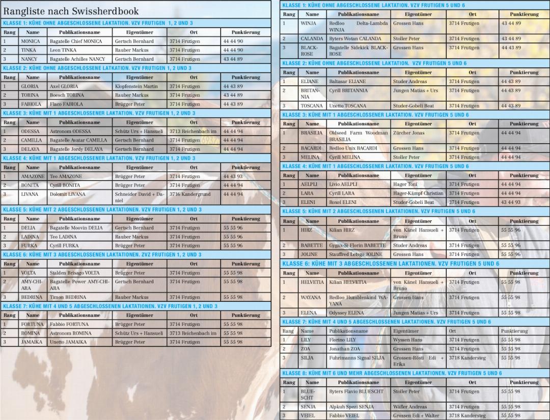 Zahlreiche Züchterinnen und Züchter aus Frutigen zeigten mit Stolz ihre Tiere – Red Holstein, Swiss Fleckvieh und Simmentaler. Bewertet wurden Erstlingskühe und Mehrlaktationskühe, also Tiere in ihrer ersten beziehungsweise in späteren Laktationen. Erstlingskühe werden separat beurteilt, da sie sich noch im körperlichen Aufbau befinden.